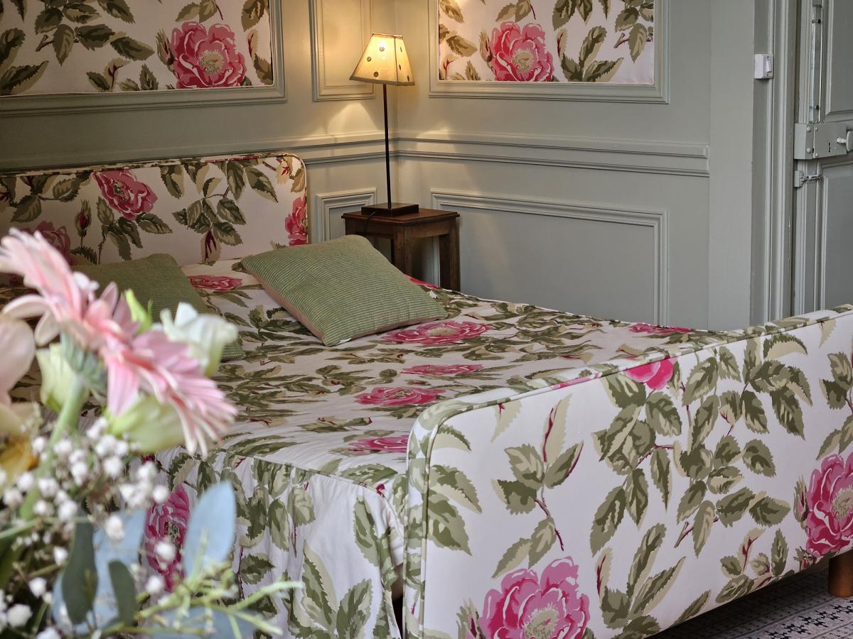 Cette chambre bénéficie d'un charme typiquement anglais avec son tissus à fleurs. Le lit dans une alcôve offre un repos doux et rassurant aux hôtes de passage.