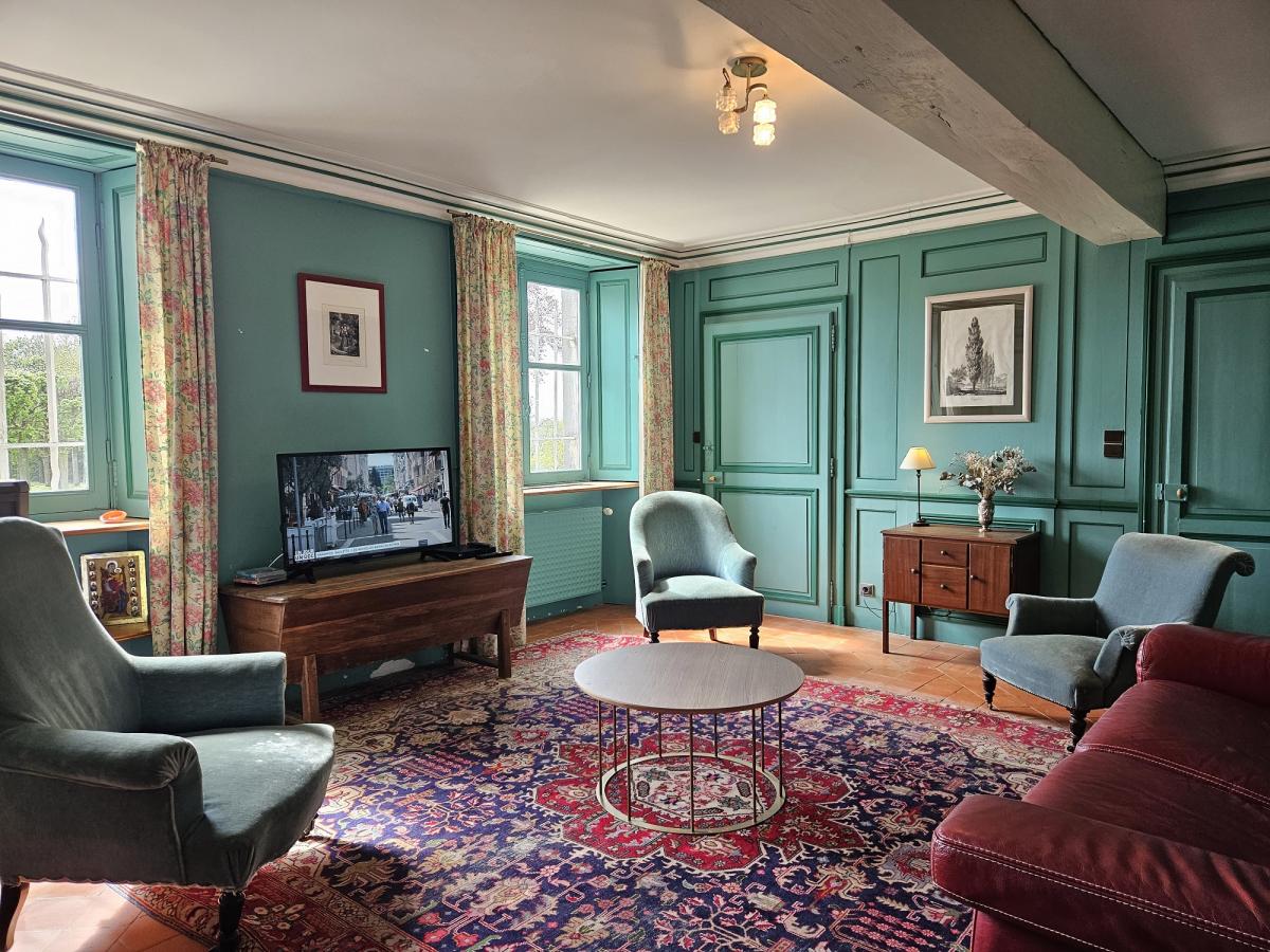 Le pavillon de l'aile ouest est situé dans le château, il abritait autrefois les cuisines du château et fut longtemps la partie habitée des propriétaires du château. sa position idéale offre une vue sur le jardin à la française, le parc à l'anglaise et la campagne autour.