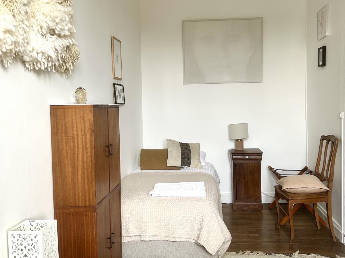 Petit déjeuner inclus. Jolie petite chambre twin, avec vue sur clocher de l'Église où le blanc et les matières naturelles jouent délicatement avec nos sens, une chambre imaginée comme une ode à la rêverie et à l'onirisme, avec de multiples oeuvres d'art.