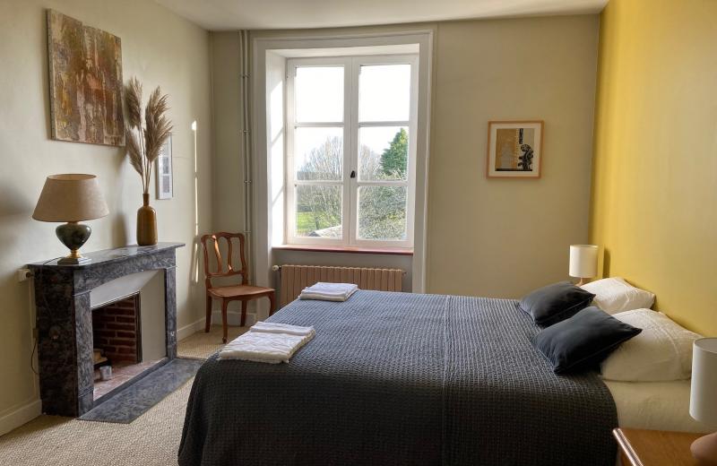 Très belle et imposante chambre double, avec vue sur le jardin, qui invite à s'aimer et se dire "je t'aime" toute la soirée les yeux dans les yeux, disposant d'un grand lit double King Size (180 cm) avec surmatelas, d'une décoration vintage et bohème, d’un placard + commode, et jouissant d'une lumineuse SDB attenante & privée, refaite à neuf, avec douche à l'italienne, double vasque et WC.
