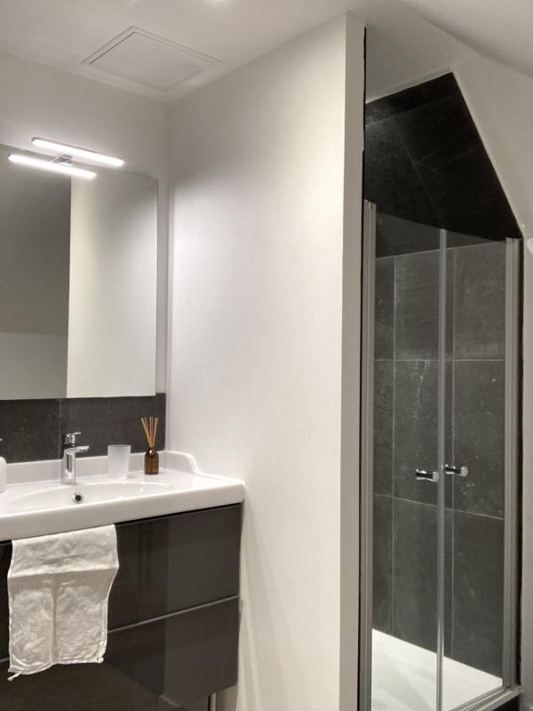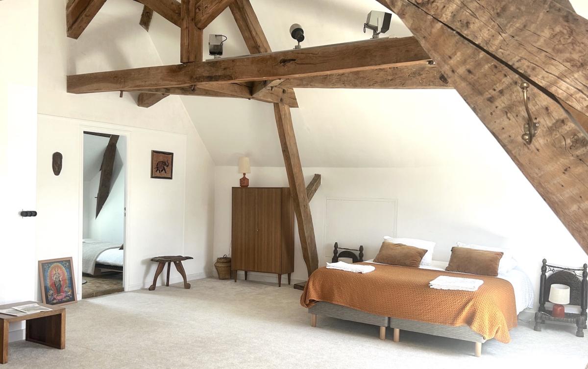 Très grande et lumineuse chambre sous charpente 5,5m de 38m2+ pièce avec SDB de 12m2 intégrant un lit.