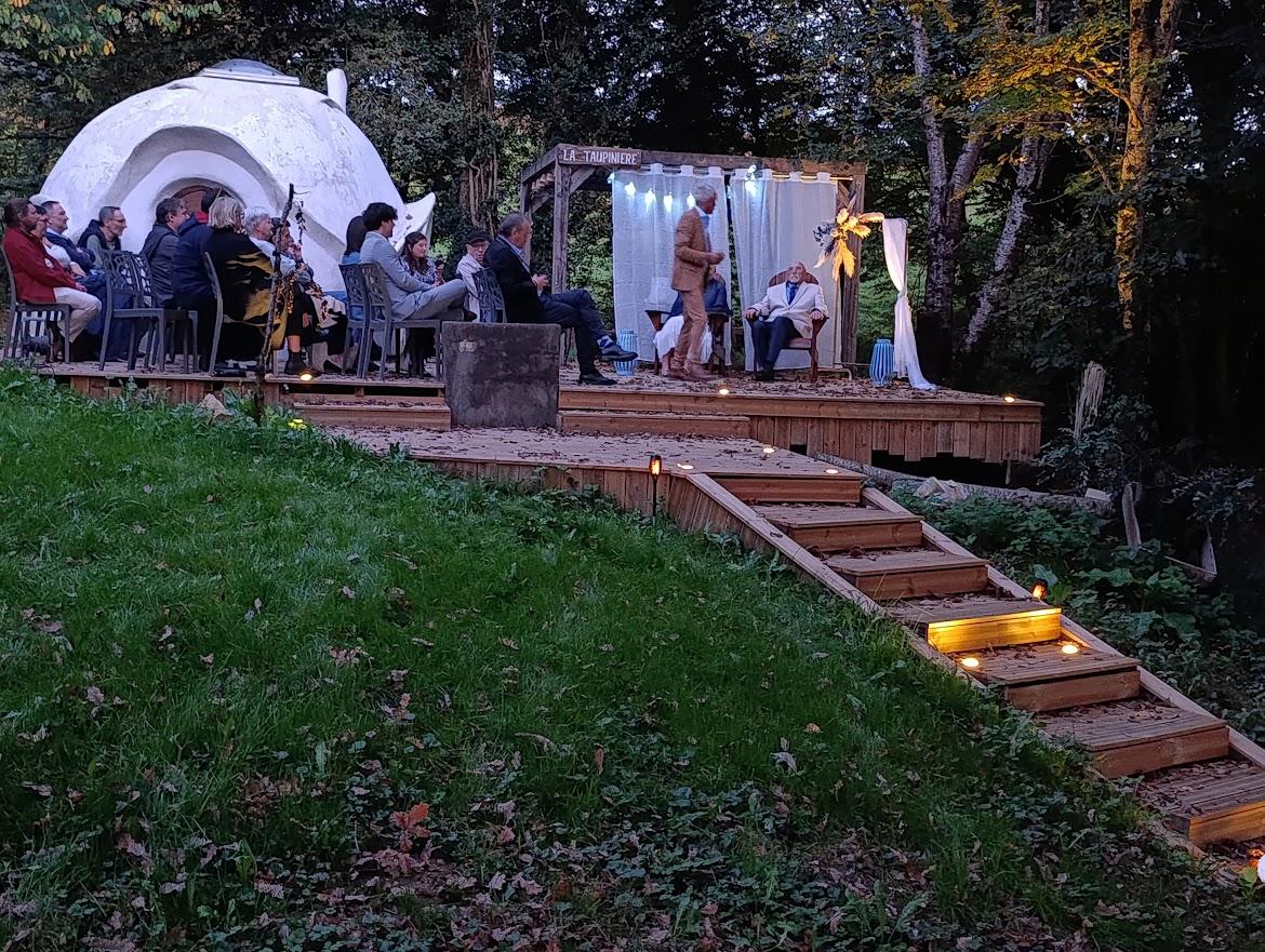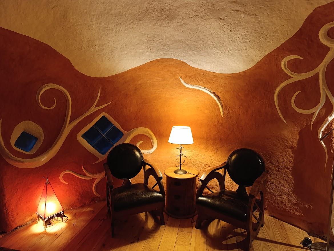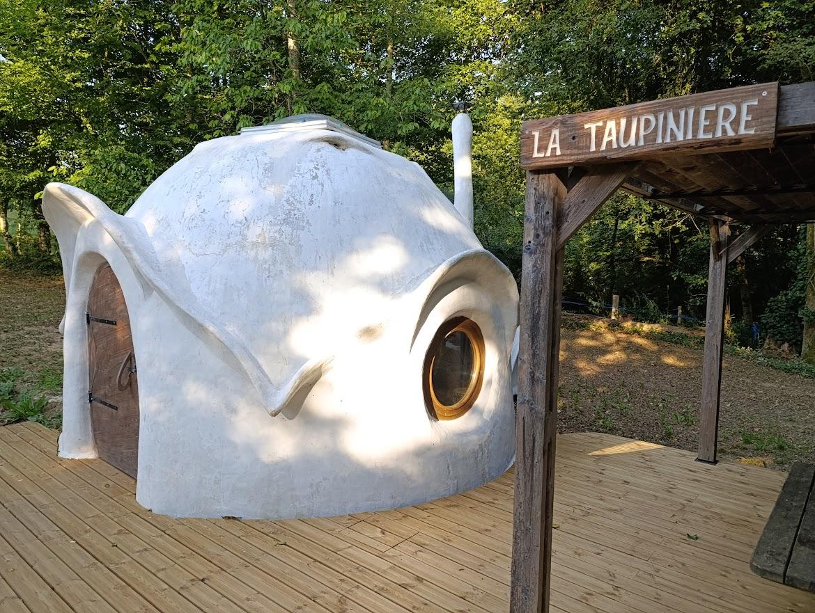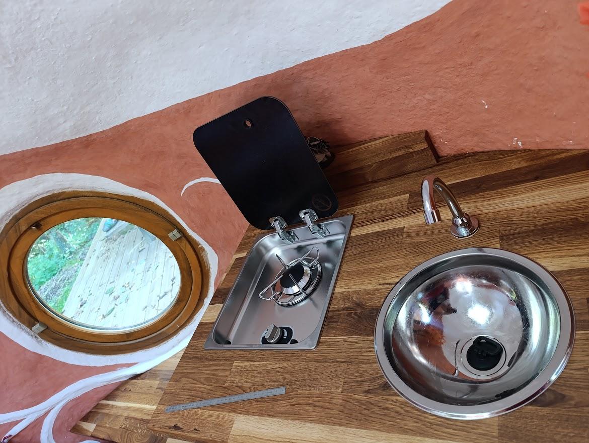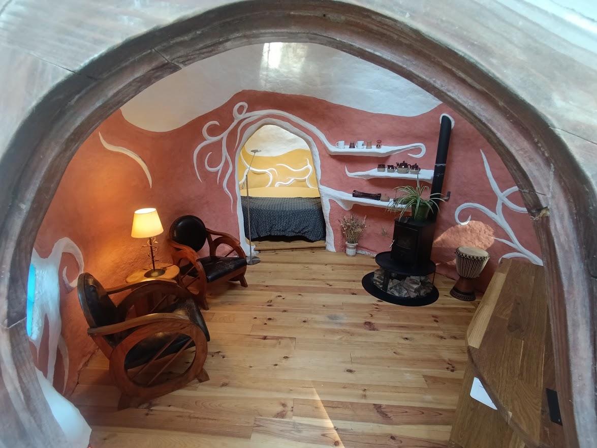 Double dôme en chanvre et chaux pour deux personnes, équipée d’un lit double rond de 220 cm avec draps fournis et ménage inclus. Vous disposez d’une plaque de cuisson, d’un évier à pompe (15L), d’un panneau solaire pour l’éclairage et la recharge des appareils. Toilettes sèches à proximité et local sanitaire à 50 m (Douches, évier vaisselle, lave-linge, sèche linge et frigo...). En option : kit serviettes (4€/pers) et petits déjeuners (10€/pers).